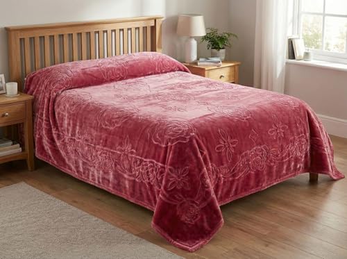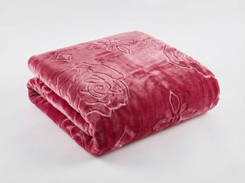 Generic - Aslan Blanket 2 Layers, Pink, Double Velvet, 240x220cm, 7K, Embossed Floral Pattern, Warm and Thick for Winter