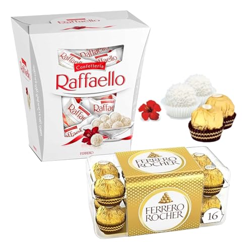Asokobox - Asokobox Hazelnut and Coconut Almond Pralines Duo Bundle - with 1 x 200g Ferrero Rocher and 1 x 230g Raffaello Gift Boxes - 39 Pieces of Chocolate Heaven