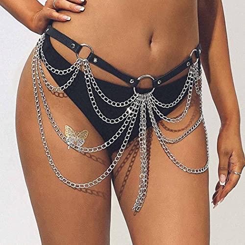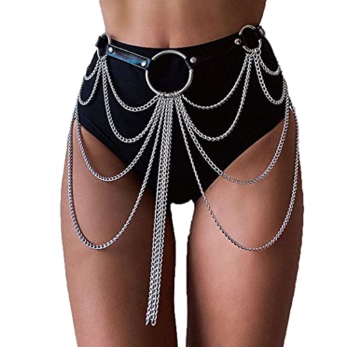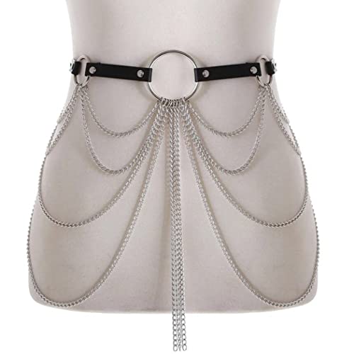 Asooll - Asooll Layered Leather Waist Chain Belt Punk Leather Body Chain Black Waist Chain Harness Bikini Belly Chain Belt Fashion Club Rave Party Body Accessories Jewelry for Women and Girls