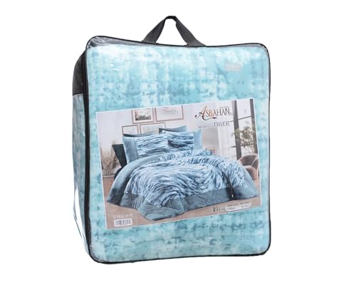 Egyptian Textile - Aspahan Comforter 4Pcs, Size 240x260 + 2 Pillow 55x75, Medical Grade Fiber Quilt, Turquoise - 18335