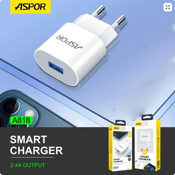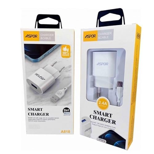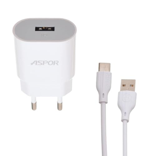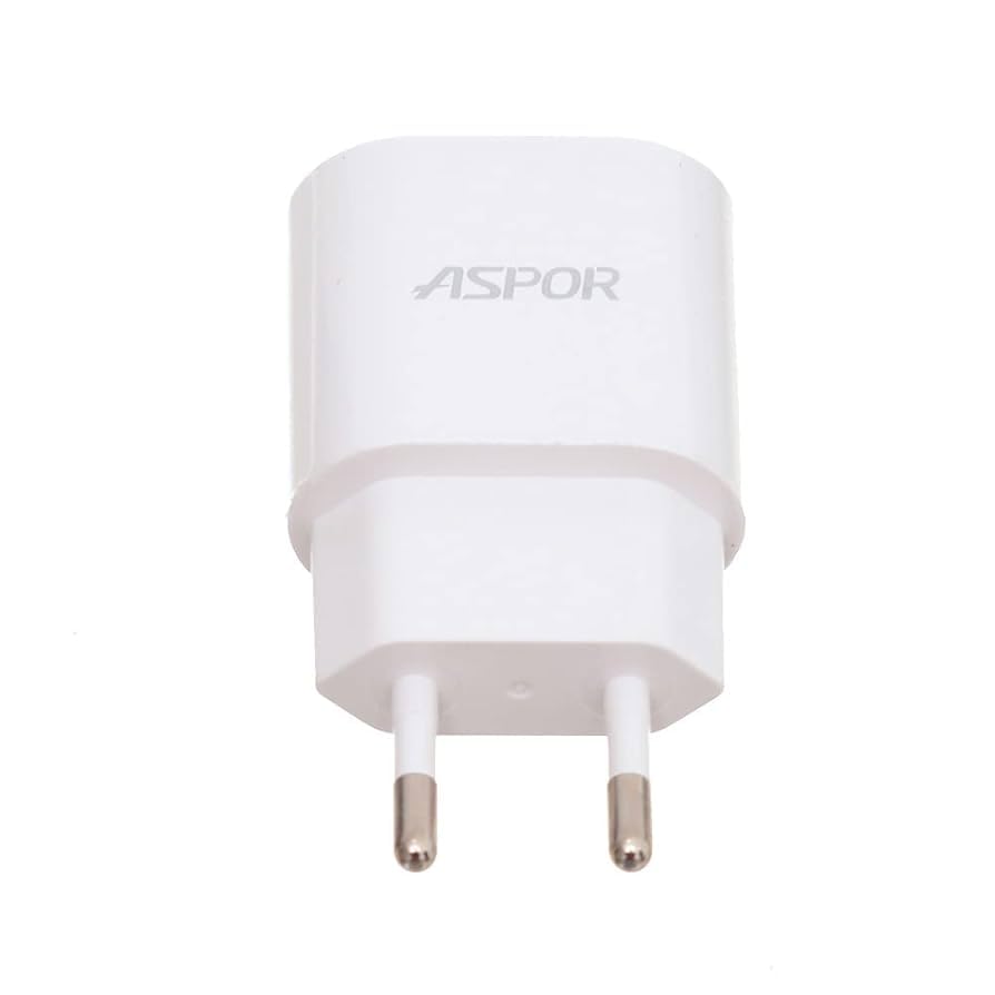 ASPOR - Aspor A818 Wall Charger 2.4A with Type-C Fast Charging Cable, Dual USB Port Adapter – White