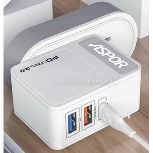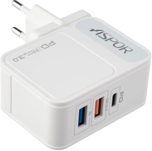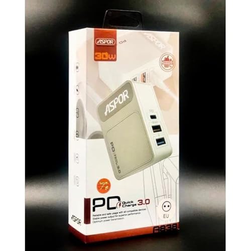 ASPOR - ASPOR A838 Fast Charger PD 18W And QC 3.0 And IQ 2.4A Output EU PIN,3 USB - White