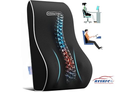 ASSAFCO - ASSAFCO Memory Foam Lumbar Support Pillow for Computer/Desk Chair, Car Seat, Gaming Chair (black/white)