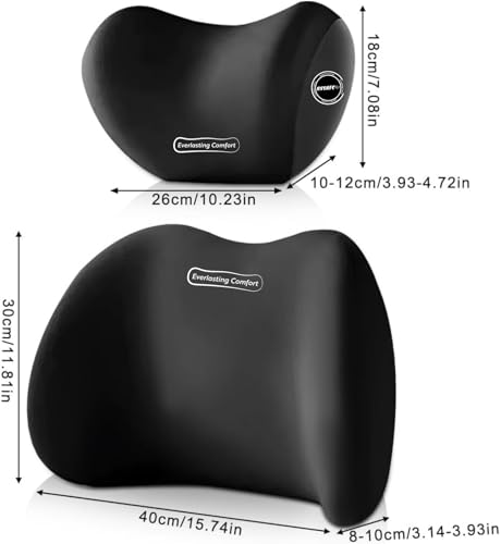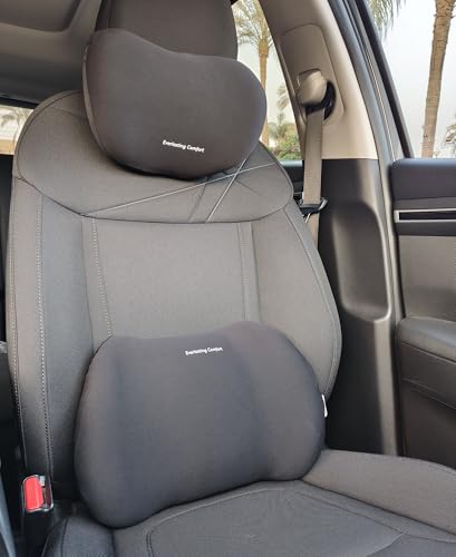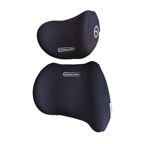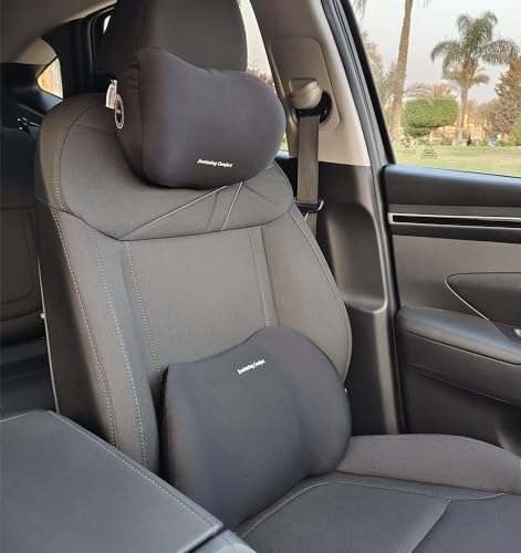 ASSAFCO - Assafco Memory Foam Universal Car Headrest Neck & Lumbar Support Pillow Set Comfortable Ergonomic Design (black)