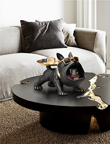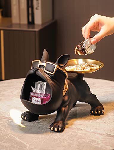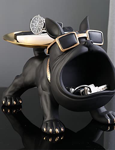Asslye - French Bulldog Figure, French Bulldog Key Bowl Jewellery Storage Box Resin French Bulldog Sculpture Decorative Gifts (Black), a001