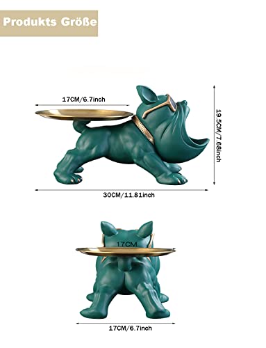 - Large size: 11.8 x 6.7 x 7.67 inches (L x W x H), tray diameter 6.7 inches. The large mouth of the French bulldog figure has plenty of space to store your car keys and small jewellery. On the tray on the back you can store your watch, cosmetics, keyring and other small items
