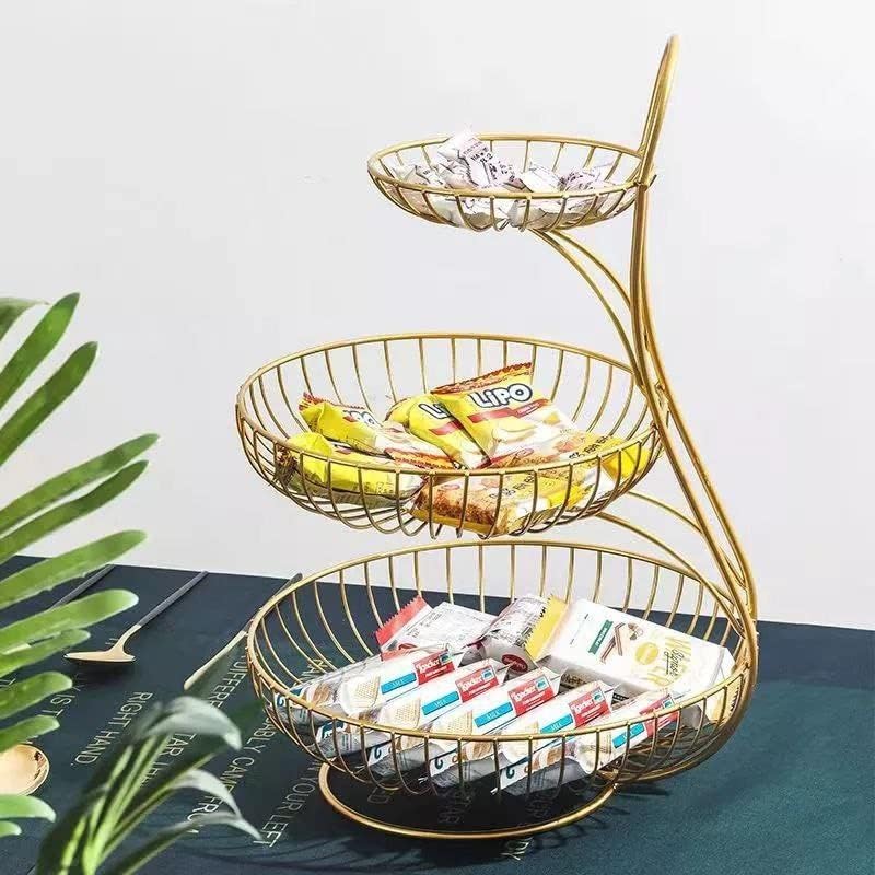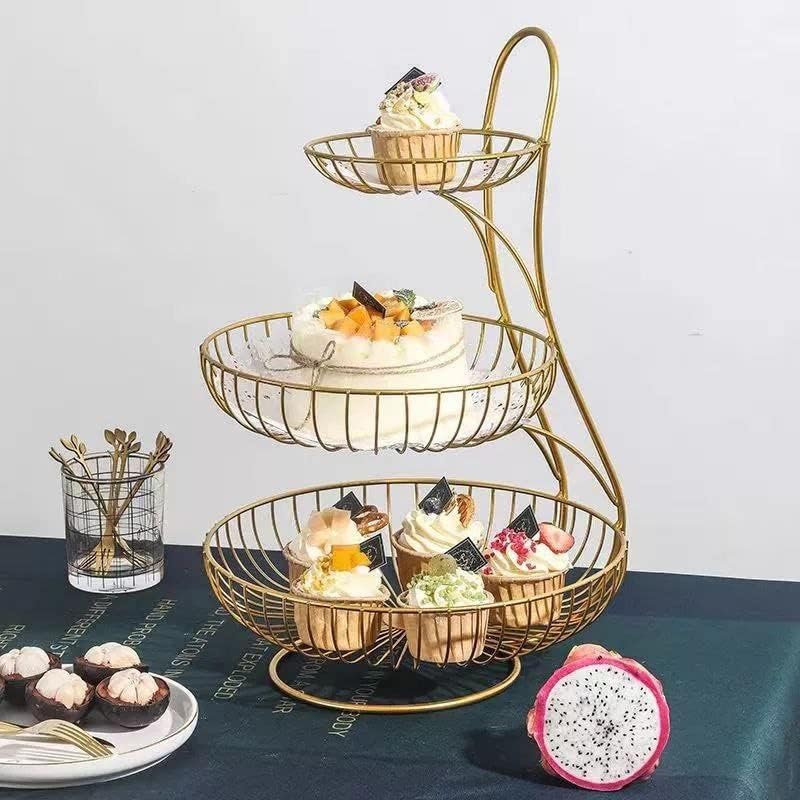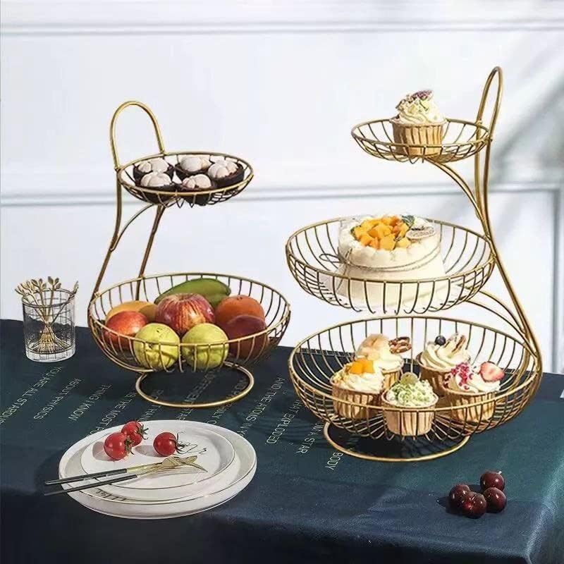 • Stainless steel serving stand features a stunning dual layer design and is a great centerpiece Simply place it on the trapeze and place your small decorations on top