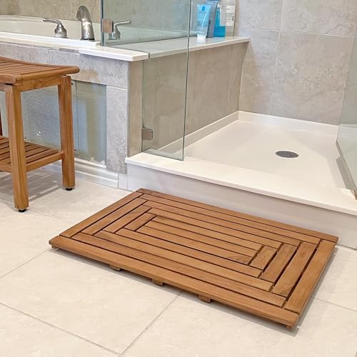 SPATEAK - دواسة أرضية حمام استا سيليكت بريستون من سباتيك مصنوعة من خشب الساج الصلب للاستخدام الداخلي والخارجي (76×51 سم)، RS-24