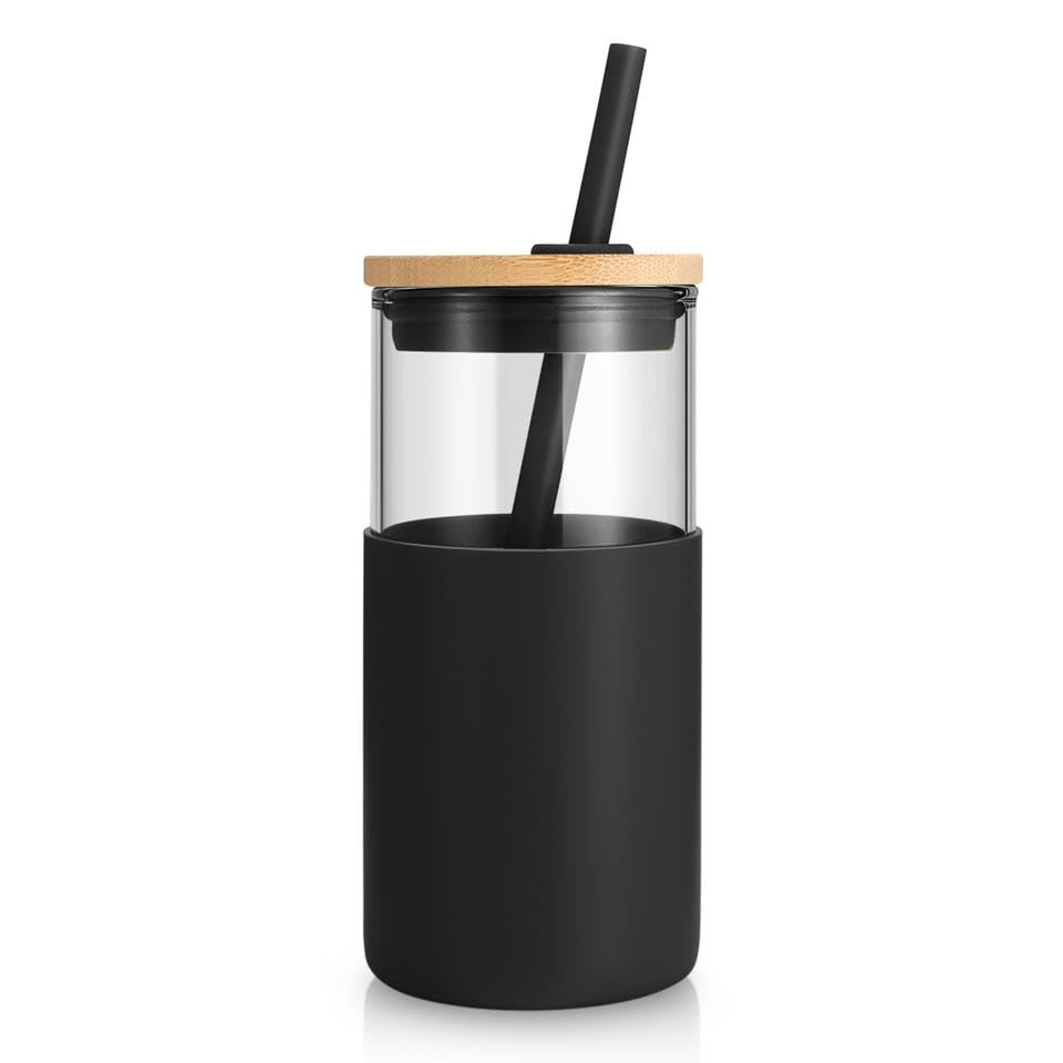 Aster Home Collection - 20oz Glass Tumbler with Straw (Black)