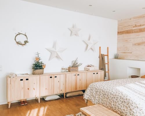 - Solid pine wood storage unit with 3 shelves, 2 adjustable in height. You can add the wooden legs of the same brand