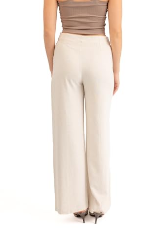 1 x ASTK Linen Wide Leg Pant with Front Stitch for Women, Size 42, Beige