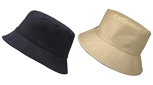 Generic - ASTRADAVI 100% Cotton Bucket Hats Unisex and Multicolour Stylish and Comfy Packs of 2 & 3 Hats, 2-pack/ Black, Khaki, L