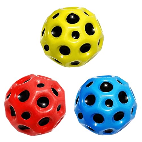 Generic - كرة قفز مطاطية عالية الارتداد من استرو، كرات بطابع الفضاء والمجرة، كرة مرتدة عالية القفز بتصميم قمر وكواكب وحمم بركانية، كرة قفز صغيرة للأطفال، لعبة كرة بثقوب للحفلات