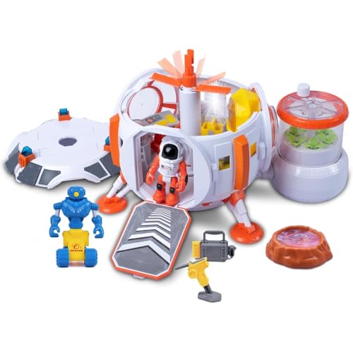 - SPACE-THEMED PLAYSET: Mars Station game set includes 1 main station, 1 greenhouse, 1 astronaut figure, 1 robot, 4 tools, 1 stone, and 3 batteries for interactive space exploration play.