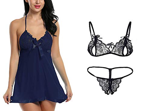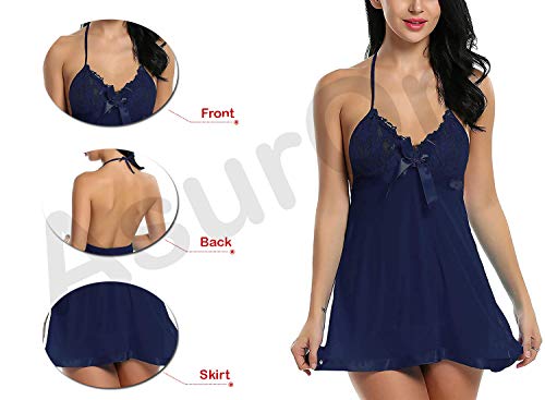 AsurOn - Women's Polyester Above knee Babydoll (AOLBC010_Blue)