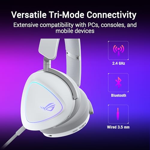 ASUS - ASUS ROG Delta II Tri-mode Wireless Gaming Headset: ROG SpeedNova, 50MM Titanium-plated Diaphragm Drivers, Refined Wireless Sound Signature, 10 MM Super-wideband Boom Microphone - White