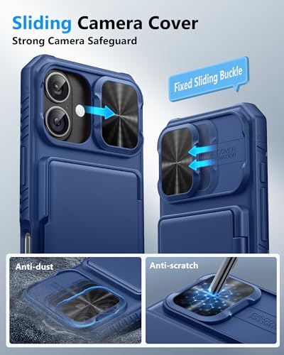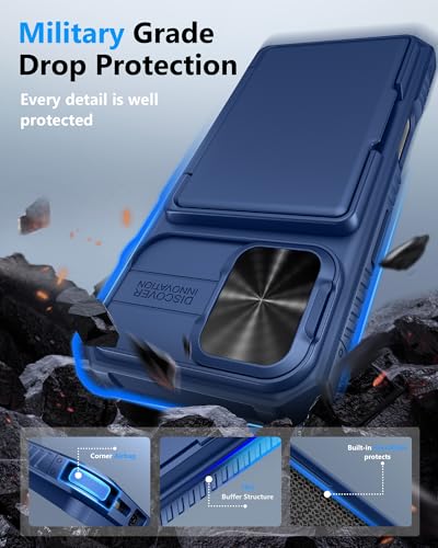 ATATOO - جراب حماية من اتاتو لموبايل آيفون 17 مع شاشة حماية من الزجاج المقوى HD [عبوتان]، حامل بطاقات وغطاء كاميرا منزلق، حماية من الدرجة العسكرية، حافظة واقية صلبة لموبايل آيفون 17 6.3 بوصة 2025، أزرق