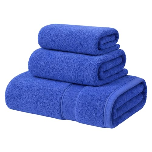 ATEN Homeware - ATEN Homeware 3 Piece Egyptian Cotton Bath Towels Set - 1 Large Hand Towel 50 x 90 cm and 2 Face Towels 30 x 30 cm - Super Soft & Absorbent - Made in Egypt (Royal Blue, Hand Towel + 2 Face Towels)
