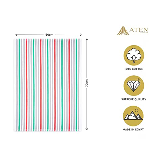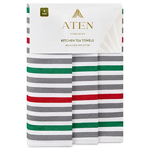 ATEN Homeware - ATEN Homeware Pure Cotton Kitchen Tea Towels Set - Stylish Pack of 3, Multi Pattern Kitchen Towels 50 x 70 cm, Super Soft and Highly Absorbent, Made in Egypt (Multicolour)