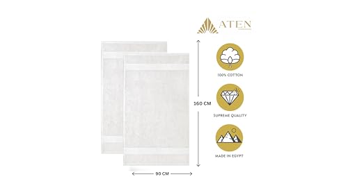 ATEN Homeware - ATEN Homeware Supreme Egyptian Cotton Bath Sheet Set – 2 Piece Set with 2 Extra Extra Large Bath Sheets 90 x 160 cm, Ultra Soft, Highly Absorbent, OEKO-TEX Certified, Made in Egypt (White)