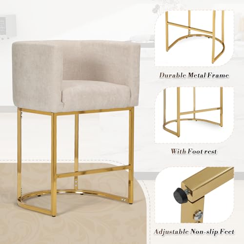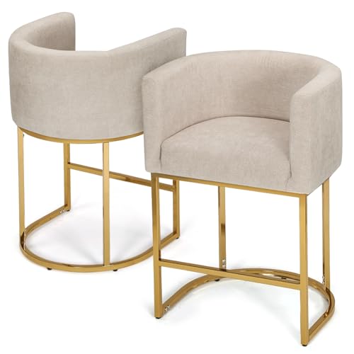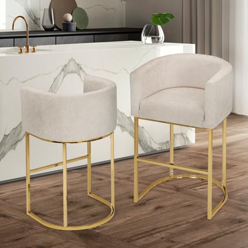 Athena Collection - مجموعة كراسي بار عصرية بارتفاع 33 انش من اثينا كولكشن مع قماش منجد، مقاعد بار داخلية وخارجية لجزيرة المطبخ، كراسي بار مع حامل معدني ذهبي (ابيض)