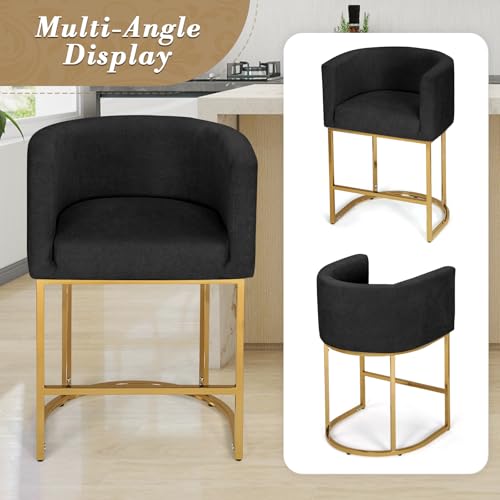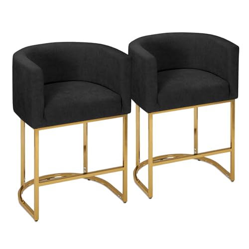 Athena Collection - Athena Collection Counter Height Bar Stools Set of 2, 24 Inches Upholstered Barstool Set of 2 with Back and Metal Base, Modern Bar Stool Chairs for Kitchen Island, Dining Room, Black