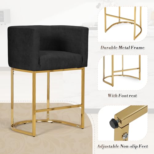 - Sturdy frame: Made with a durable gold frame and a strong base, these kitchen island stools offer reliable support and stability, holding up to 300 lbs. The adjustable, non-slip feet protect your floors from scratches.