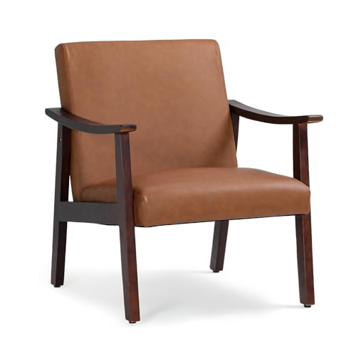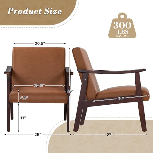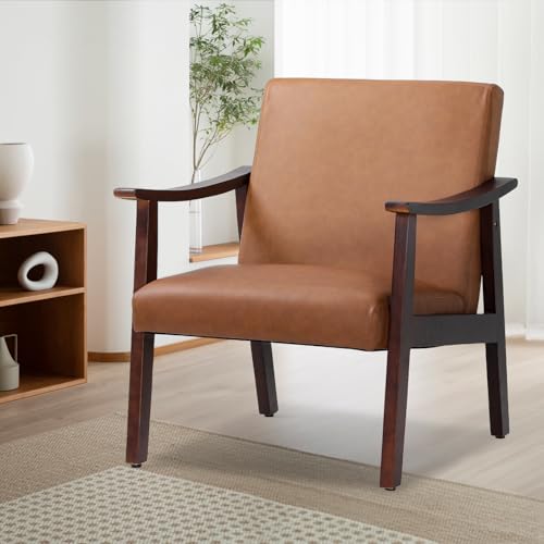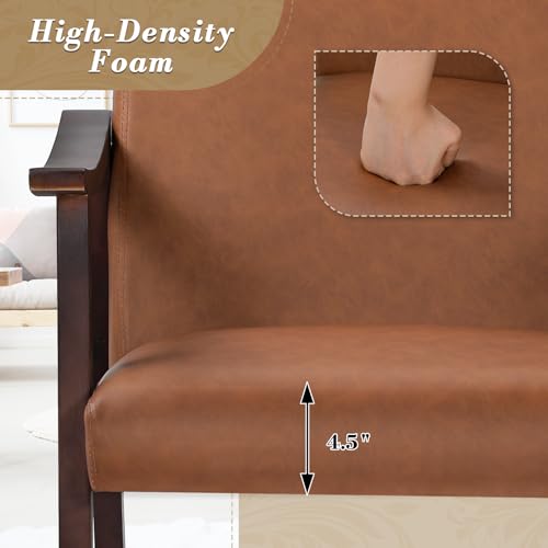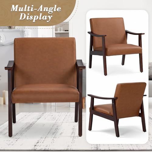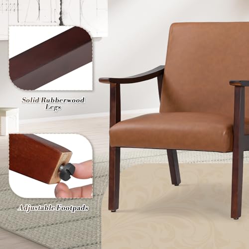 Athena Collection - Athena Collection Mid Century Modern Accent Chairs, PU Leather Reading Arm Chairs for Adults with Wooden Armrest and Legs, Comfy Upholstered Armchairs for Living Room, Bedroom, Waiting Room, Brown