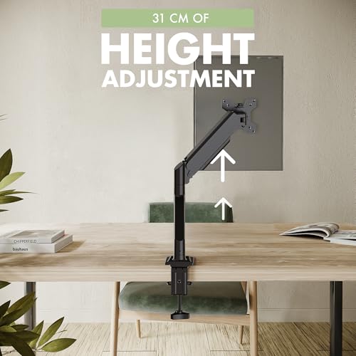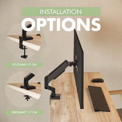 - EASY INSTALLATION - The single monitor arm comes with 2 fixing methods to your desk, or simply fix it on the edge of your desk or use the eye stand if your desk has already been pre-drilled for a monitor arm bracket. Mounting your monitor is a simple process with the detachable VESA plate and we provide all the necessary hardware and instructions for easy mounting.