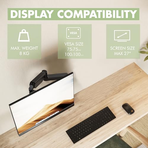 - ✅ WIDE COMPATIBILITY - Holds a 13"-27" TV or monitor screen with a maximum load capacity of 8kg. Suitable for monitors with VESA dimensions 75x75mm or 100x100mm (distance of 4 mounting holes on the back of the monitor). Properly optimizing your workstation and screen position can have a huge positive impact on productivity, health and wellbeing.