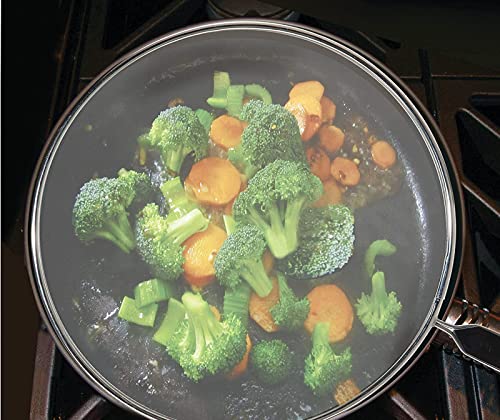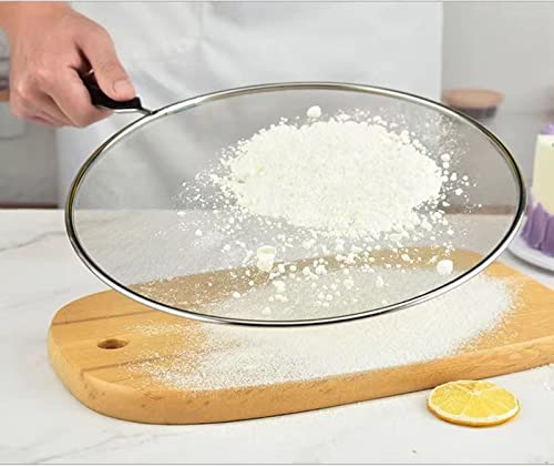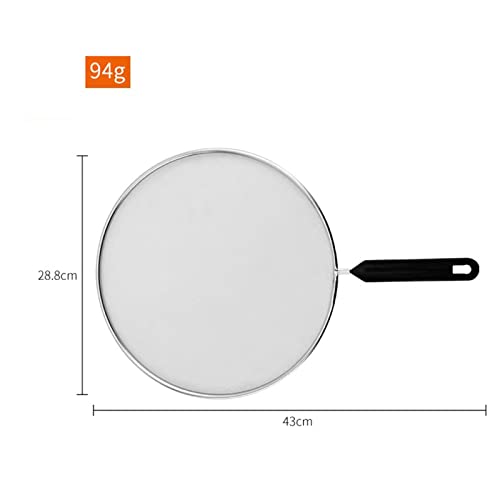 - This splatter screen diameter is 28.8cm, handle length is about 14.2 cm. Holds most frying pans up to 11 inch diameter. Meet your various cooking demands. It will fit all kind pots, skillets and pans, grease guard.