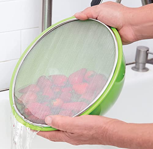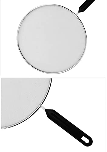- The splatter screens are made with professional-grade stainless steel, and they contain a rust-proof fine wire mesh screen. The fine mesh screens traps very fine particles. In addition, the solid stainless steel wire handle with the comfortable grip keeps your hands away from the heat while cooking.