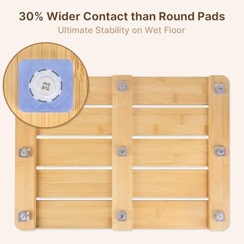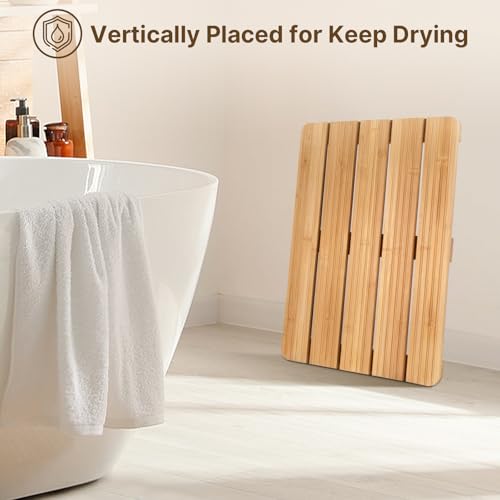- Waterproof and Sturdy Construction for Support: 0.33-inch gaps between bamboo boards instantly channel water, speed drying, and prevent toe-catching hazards. Our bamboo bathroom mat holds 300 lbs securely without bending or cracking, ideal for families with kids, the elderly, or pet bathing.