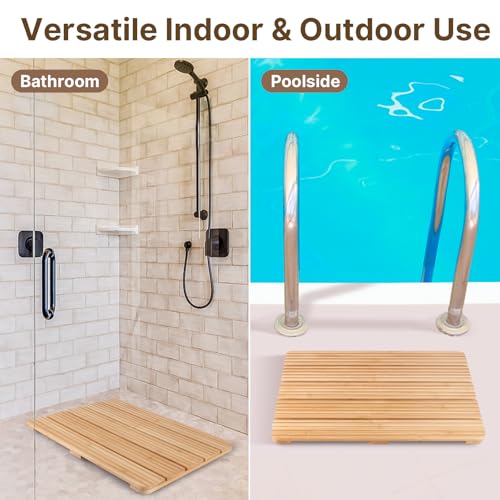 - Versatile Bath Mat to Use: Our durable bamboo bath mats for bathroom floor not only add some luxury to your bathroom, but also serve as an elegant complement to kitchens, saunas, beaches, and swimming pools.