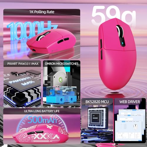 - 【Professional-level accuracy and speed】 The ATTACK SHARK G3 PRO wireless mouse stands out with its PixArt PAW3311 gaming sensor and Broadcom BK52820 custom MCU, which offer zero latency and perfect pixel tracking. This mouse allows you to precisely adjust DPI from 100 to 25,000, polling rate up to 1000Hz, tracking speed at 300 IPS and acceleration to 40G. Enjoy unparalleled responsiveness for headshots in FPS and MOBA skill combos, capturing every move and micro-motion to perfection.