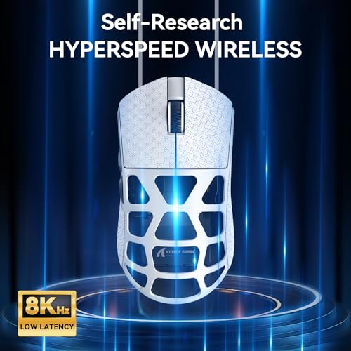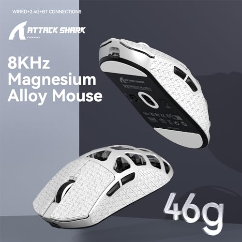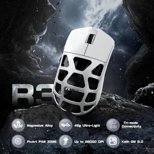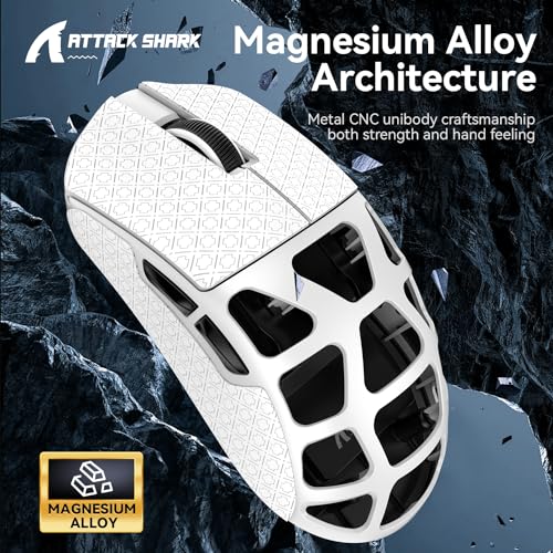 ATTACK SHARK - ATTACK SHARK R3 Wireless Gaming Mouse with Griptape, BT/2.4Ghz/Wired Computer Mouse, PAW3395 26K DPI Optical Sensor, Programmable Buttons, Gaming Accessories for PC/Laptop/Mac (White)
