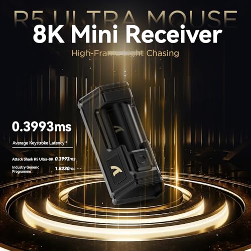- 【Tri-Mode Connectivity 8KHz Wireless Polling Rate】 The R5 mouse provides Wired/Bluetooth/2.4GHz connection methods. And it is equipped with HYPERSPEED Wireless technology Nano dongle receiver, which achieves a polling rate of up to 8000Hz in 2.4G wireless mode, the response time is reduced from 1ms at 1000Hz to as low as 0.125ms. The Type-C port enables instant charge-and-play. Never miss a Warzone final circle or Genshin Impact dodge due to latency.