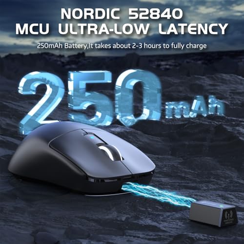 - 【اتصال ثلاثي الأوضاع وبطارية 250 مللي أمبير في الساعة】يمكنك التبديل بسلاسة بين الأوضاع اللاسلكية والبلوتوث والسلكية بتردد 2.4 جيجاهرتز، مما يمنحك المرونة للاتصال بأجهزة مختلفة. مع عمر بطارية يصل إلى 200 ساعة بشحنة واحدة. يستغرق الشحن الكامل حوالي 2-3 ساعات. ستستمتع بأداء متواصل، سواء كنت تلعب أو تعمل.
