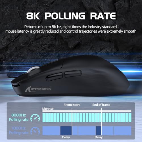 - 【تقنية هايبربولينج من اتاك شارك 8000 هرتز】استجابة استجابة منخفضة للغاية: ماوس الألعاب اللاسلكي اتاك شارك R6 مجهز بجهاز استقبال لاسلكي 8K، يتم زيادة معدل الاقتراع إلى 8000 هرتز، وهو أسرع 8 مرات من الماوس اللاسلكي القياسي 1000 هرتز