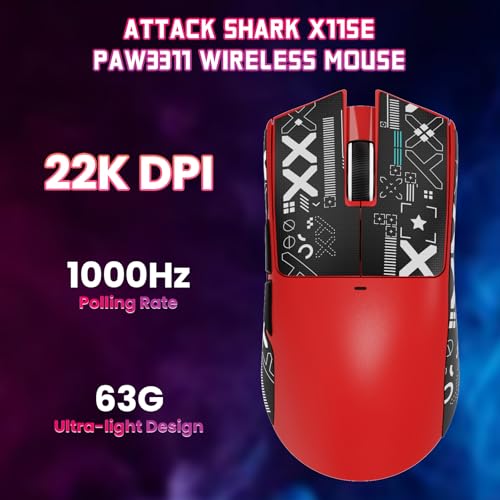 ATTACK SHARK - ATTACK SHARK X11SE Lightweight Wireless Gaming Mouse, 59g Tri-Mode BT/2.4G Wireless/Wired Gaming Mouse, PixArt PAW3311 Gaming Sensor, 22000 DPI, Office Mice with Tape for PC/Xbox/Win/Mac (Red)