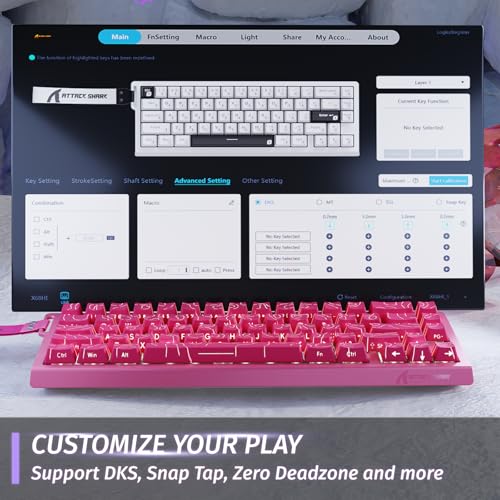 ATTACK SHARK - ATTACK SHARK X68 HE 8000Hz Rapid Trigger Keyboard, 0.01 mm RT Accuracy, Wired RGB 60% Gaming Keyboard with Magnetic Switches, Adjustable Actuation, Snap Tap, for PC/Mac, Pink Contours