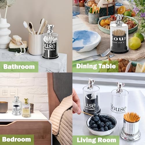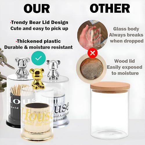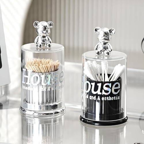- The round cotton rod holder and dispenser is a cool and attractive bathroom organizer that will add a charming touch to any room. With its cute bear cover's design, it enhances the beauty of stylish rooms, bars, and bathrooms, making it a great decor piece to spark conversations and elevate your space.