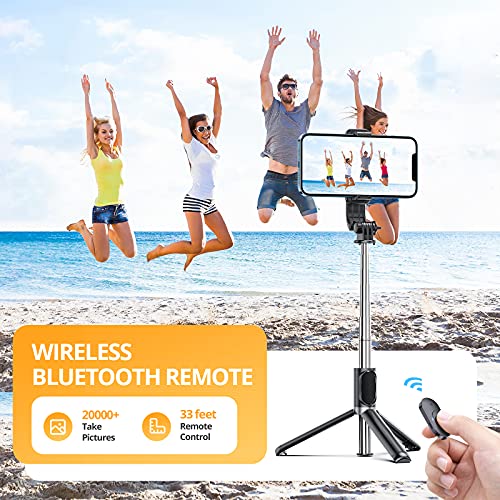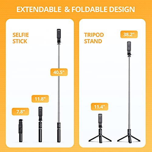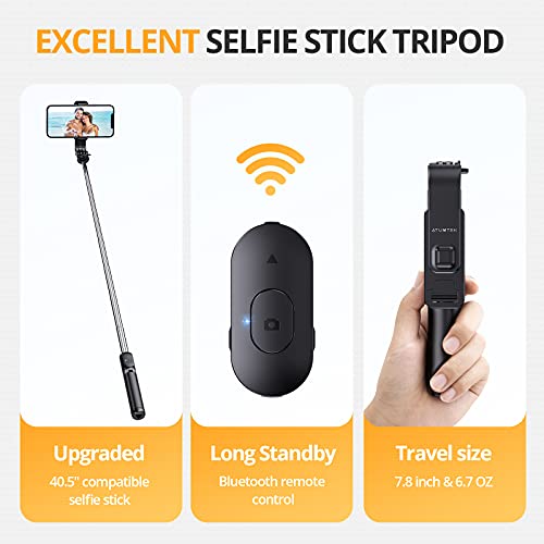 ATUMTEK - ATUMTEK 40.5" Selfie Stick Tripod, Extendable & Portable Bluetooth Selfie Stick with Remote for iPhone 13/12/12 Pro/11/XS/XR/X/8/7 Plus, Samsung, Huawei, Google, LG, Sony Android Smartphones, Black