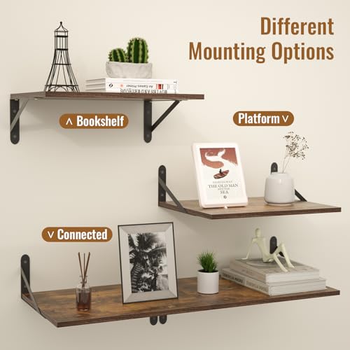 - Multi-Purpose, Decorative Shelves with Iron Brackets: The bracket can be installed above or below the board according to space and usage. Even they can also seamlessly connect multiple shelves to form a longer shelf for a larger space