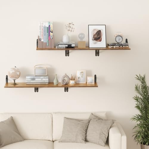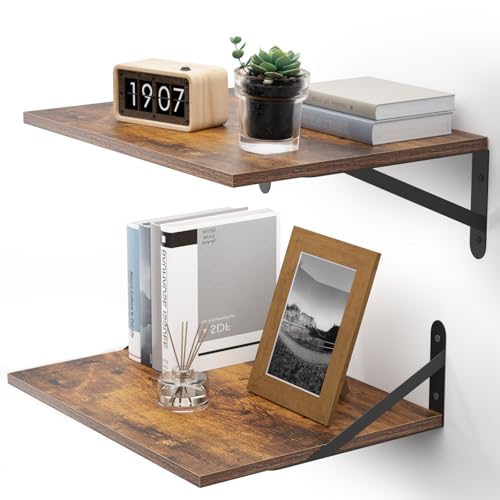AUATRONNE - Floating Shelves for Wall Set of 2, 12 Inch Deep Floating Shelves, Rustic Wood Floating Shelves, Wall Mounted Hanging Shelves for Living Room, Kitchen, Office, Bathroom and Bedroom Decor
