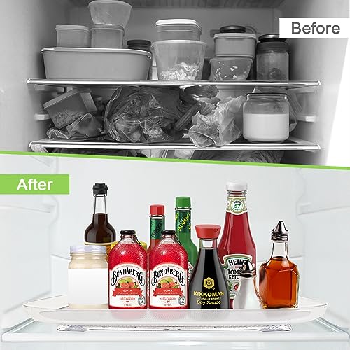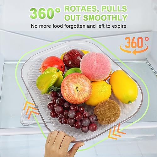 - ✅【SMOOTH 360° ROTATABLE】Our Lazy Susan for refrigerator features a smart heart-shaped track system on ball bearings that allows the tray to be pulled out and rotated forward and side to side for easy access. Everything you put in the back will be right in front of you without having to move a bunch of jars and bottles, saving you time and avoiding food being forgotten and wasted.