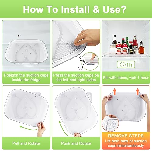 - ✅【STABLE AND EASY TO CLEAN】This latest refrigerator carousel organizer can be easily fixed on the refrigerator shelf surface using only suction cups. Made of high-quality plastic, the surface of the turntable is designed with textures, so it is not easy to slide when placing items. Safe, odorless and easy to clean. Tips: The suction cup may not work on rough surfaces, it should be used on smooth surfaces like glass, tile, marble and wood.