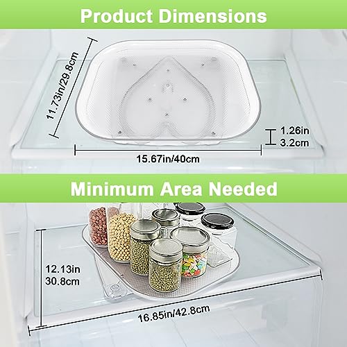 - ✅【FIT MOST REFRIGERATORS】The perfect size of this refrigerator Lazy Susan organizer is 15.67 x 11.73 x 1.26 inches (L x W x H), which fits most refrigerators and can hold a large amount of items up to 17.6 pounds, and its size is designed just right ! NOTE: Before purchasing a lazy Susan, be sure to measure your refrigerator, cabinets, or wherever you need it. Minimum dimensions required: length >16.85'', width >12.13''.
