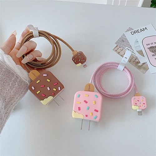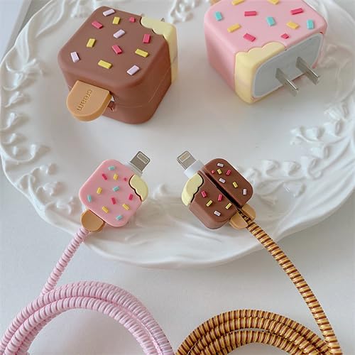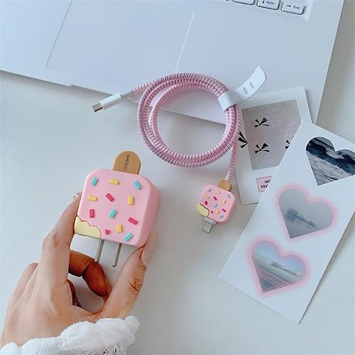 AUGEN - AUGEN Cartoon 3D Design Protective Case for 20W iPhone USB-C Power Adapter Charger, Cute Cartoon Lightning Data Cable Case for iPhone Charger (Ice Cream Pink, Pack of 1)