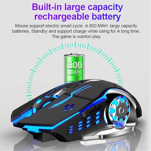 Generic - ماوس لاسلكي قابل لإعادة الشحن مع بطارية سعة 800 مللي امبير في الساعة وإضاءة خلفية ار جي بي وامضة ونقطة لكل بوصة قابلة للتعديل من اولا ألعاب بصري معدن للاب توب والمكتب والألعاب أسود
